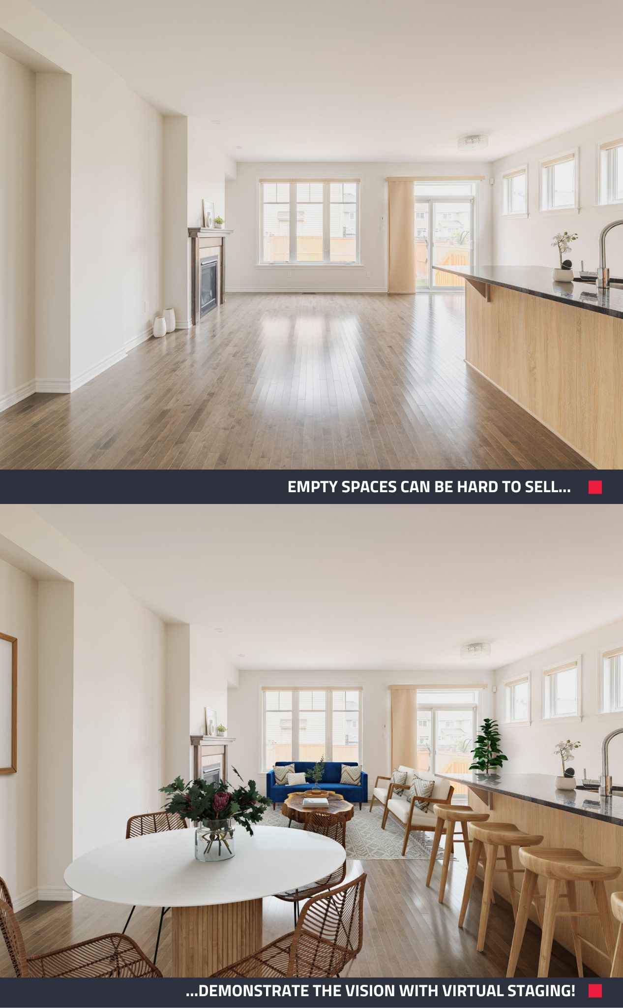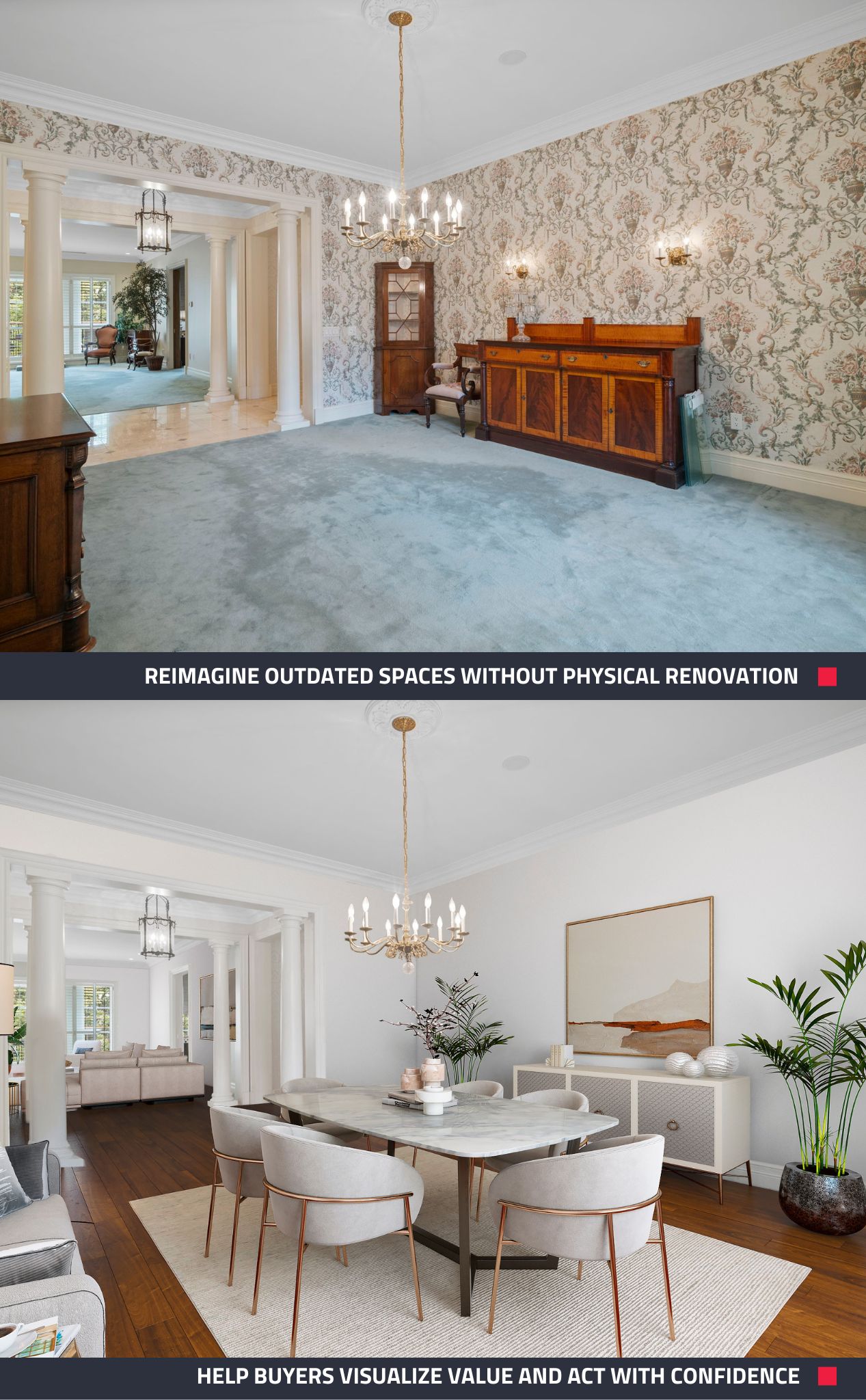 When a home is not move-in ready, buyers can struggle to picture what it could become. It is hard to fall in love with worn finishes or empty, cluttered spaces. Virtual edits shift the focus from what the home is today to what it could be in the future, helping buyers connect emotionally and imagine a lifestyle, not just a structure.