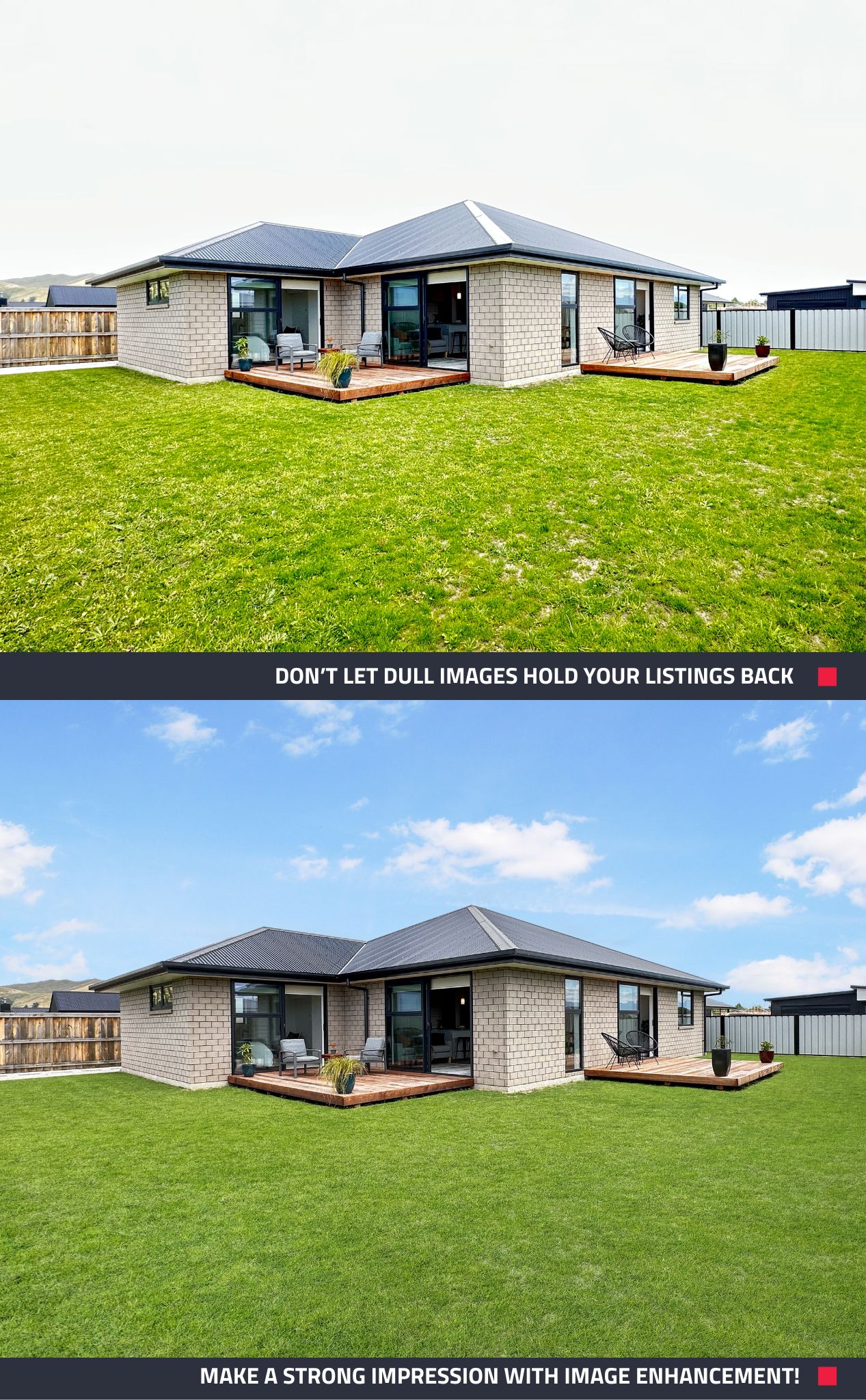 Small digital touches can make a powerful difference, especially for as-is listings. With Image Enhancement, we can improve skies, balance lighting, and improve overall clarity so photos better reflect what the human eye sees.