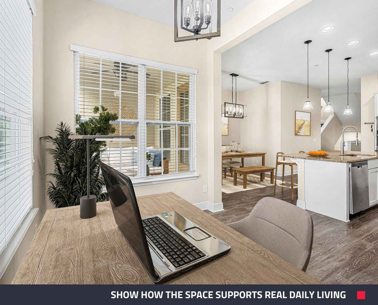 - Rentals: Tenants look for practical and inviting spaces. Showing how furniture, décor, and amenities work together makes your listing feel like home and stand out from the competition.