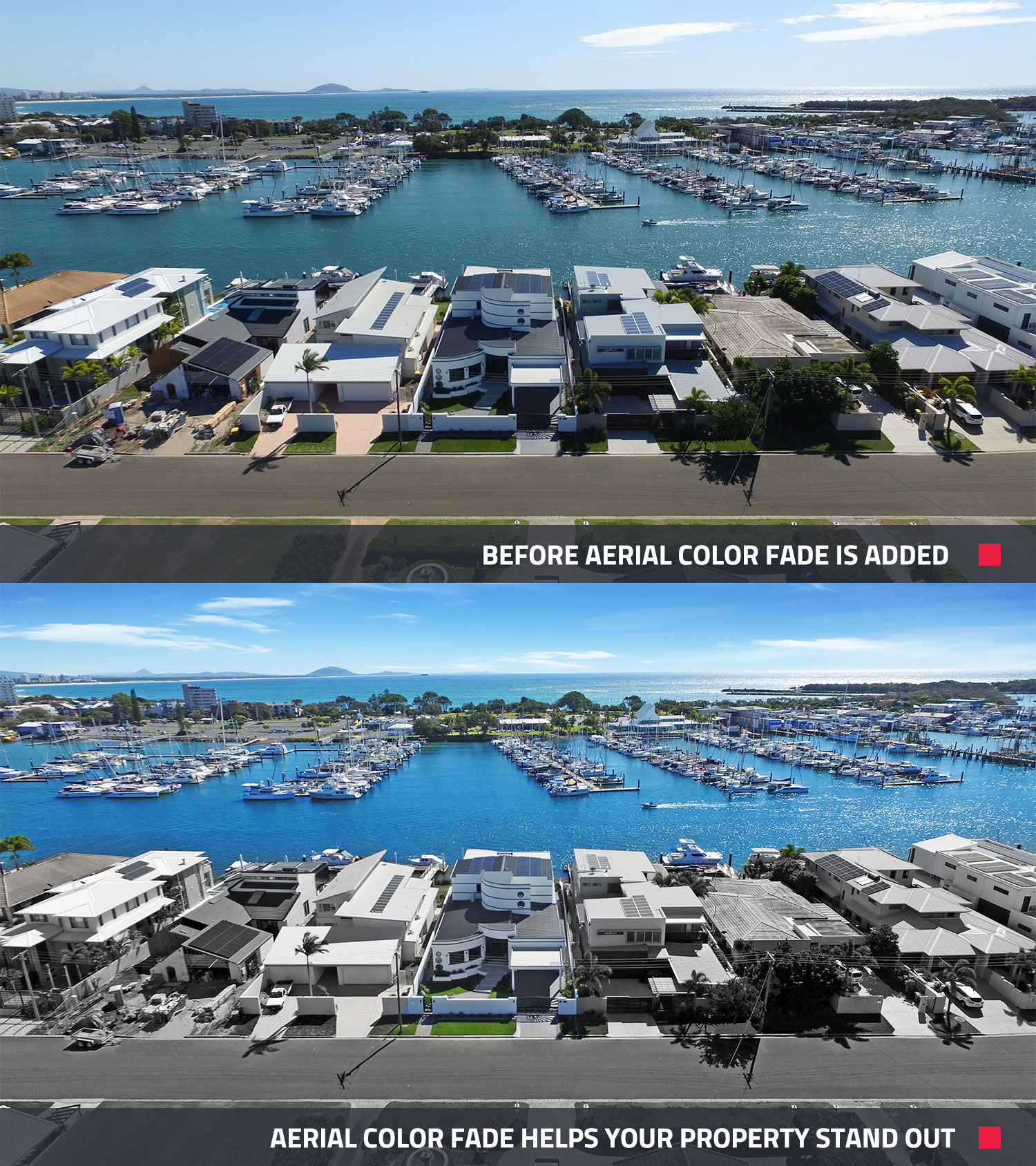If you’d like any additional editing, you can choose from a range of different types within the ‘Optional Extras’ dropdown menu. There is a selection of excellent options to choose from including Aerial Color Fade where we turn the neighboring properties gray to highlight your listing.